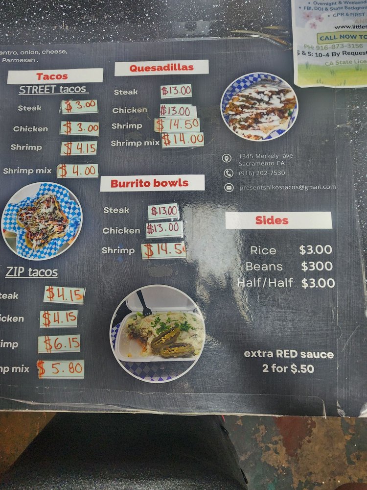 Located in Roseville, CA, Nikos Tacos offers a diverse menu of authentic and flavorful tacos. The restaurant provides a range of utilities including takeout, delivery, wheelchair accessibility, catering services, and more. With gluten-free and vegetarian options available, Nikos Tacos caters to various dietary preferences. The establishment boasts a welcoming atmosphere with outdoor seating, a drive-thru, and heated outdoor seating for year-round enjoyment. Additionally, customers can enjoy happy hour specials and a wide selection of alcoholic beverages. The menu features classic taco fillings like carne asada, al pastor, and carnitas, all prepared with fresh ingredients and bold flavors. Whether you're dining in, taking out, or hosting a private event, Nikos Tacos aims to provide a memorable dining experience for all guests.